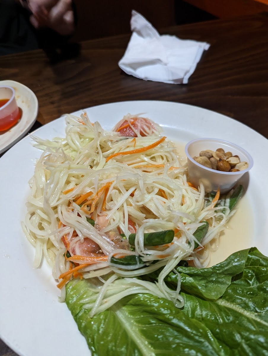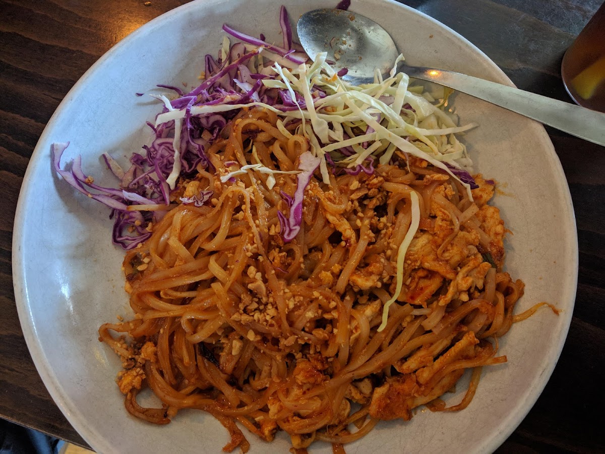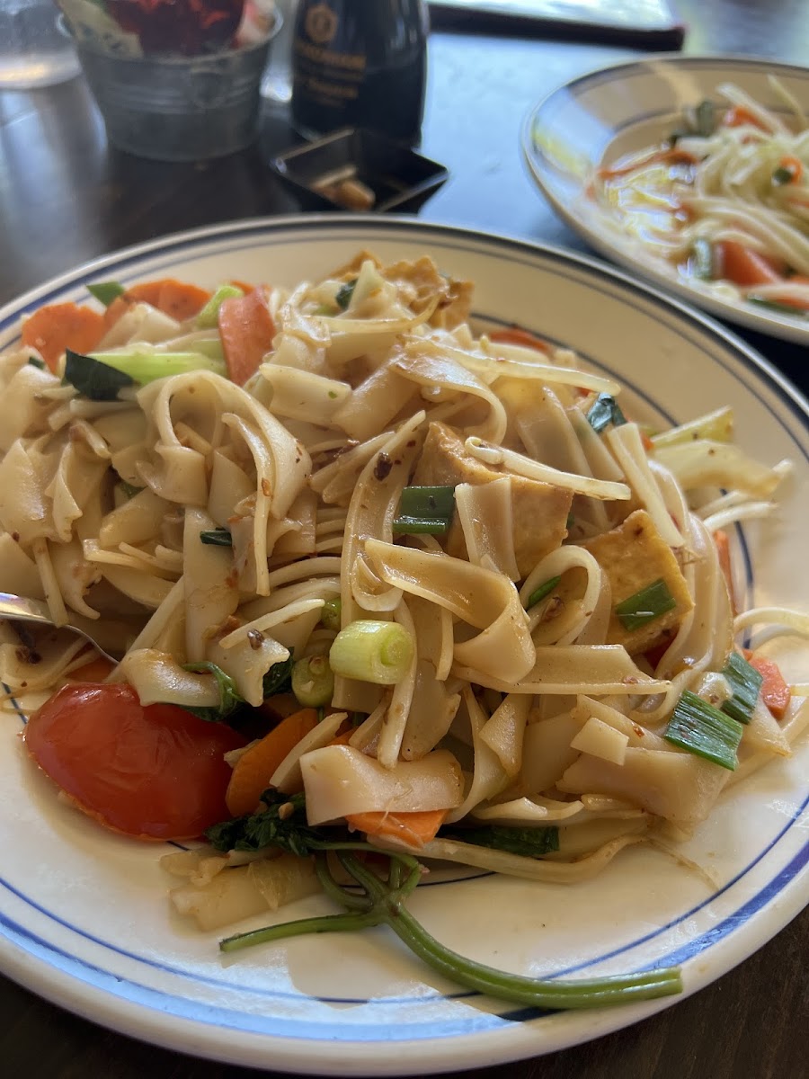 Overall, I was happy with the food. The restaurant’s appearance isn’t as upscale as some other Thai spots, but it’s clean and has nice traditional decor. Our server, who I believe was Hispanic, was very kind and provided great service. The food took a bit longer than expected (around 30 minutes), even though it wasn’t too busy, but they seemed short-staffed in the kitchen. The meal itself was delicious, with a GENEROUS amount of VEGGIES in the noodle dishes, which really elevated the flavors—especially the basil in my dish. Overall, good food and polite service at a fair price. I'd say if more restaurants balanced their foods with these veggies and flavors like this restaurant did, the others would do better.