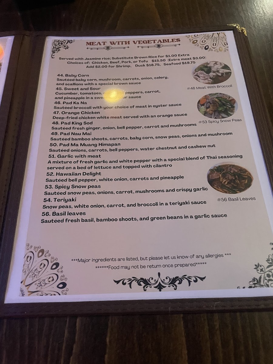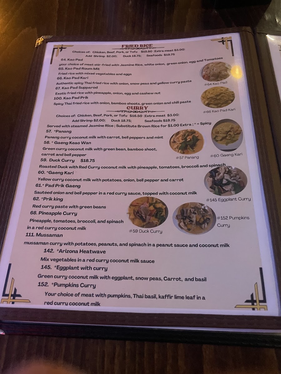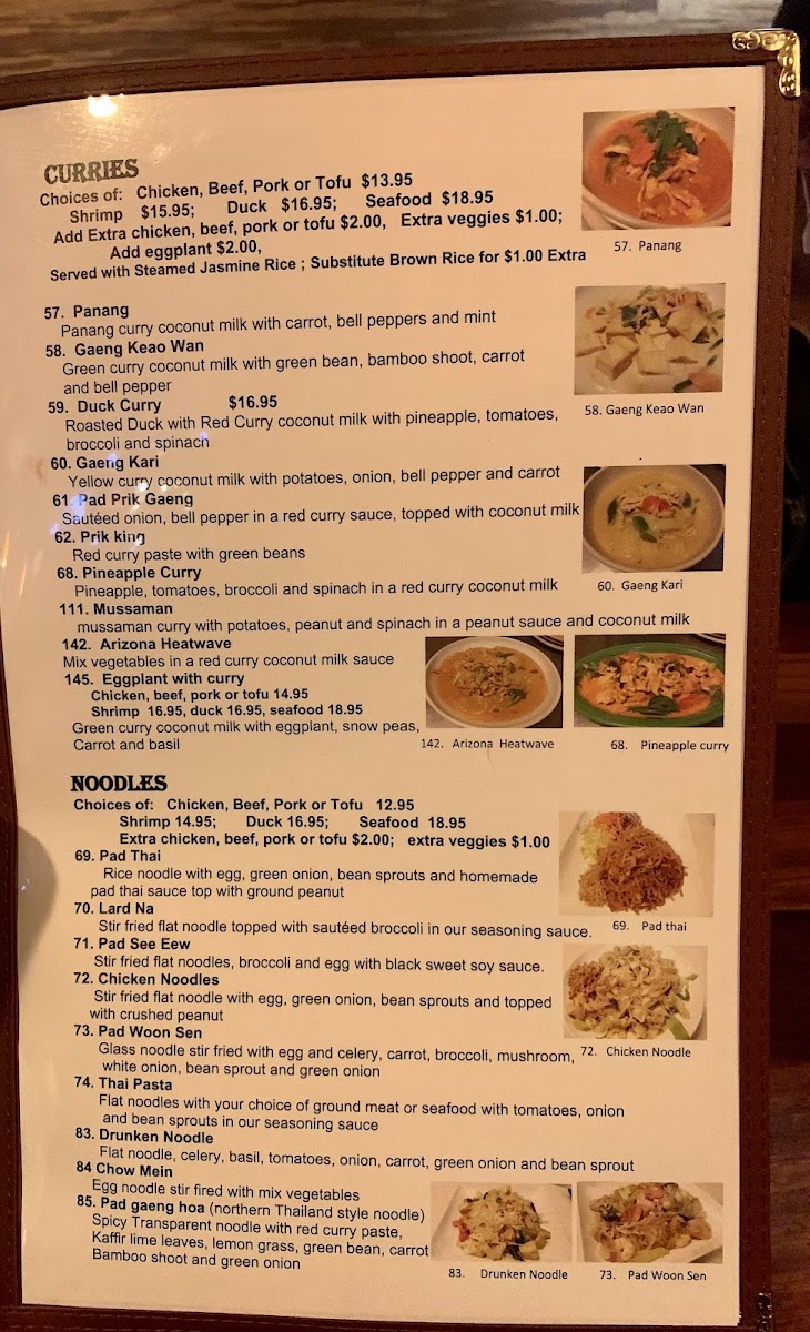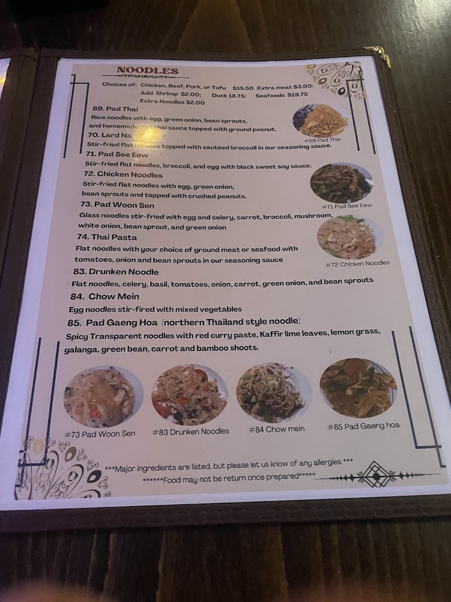 Overall, the food and drink here complement a setting where friendly service and traditional decor come together to create an approachable dining experience. Whether stopping by for takeout or sitting down for a casual meal, the menu reflects a reliable and flavorful exploration of Thai cuisine that fits well into everyday moments.