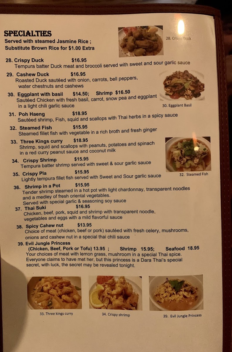Dara Thai Restaurant Menu